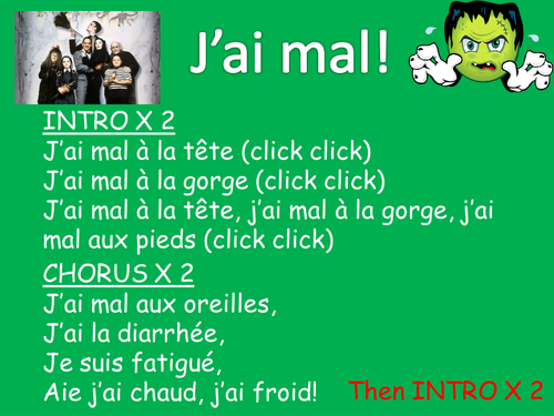French Song To The Addams Family J Ai Mal Teaching Resources