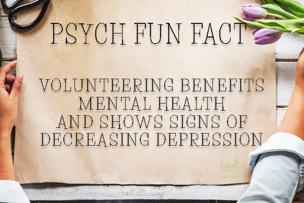 Grace Counseling Sur Twitter Psych Fun Fact Volunteering Benefits Mental Health And Shows Signs Of Decreasing Depression Psychfunfact Funfacts Psychology Volunteering Volunteer Decreasedepression Coloradocounselors Gracecounseling Therapy