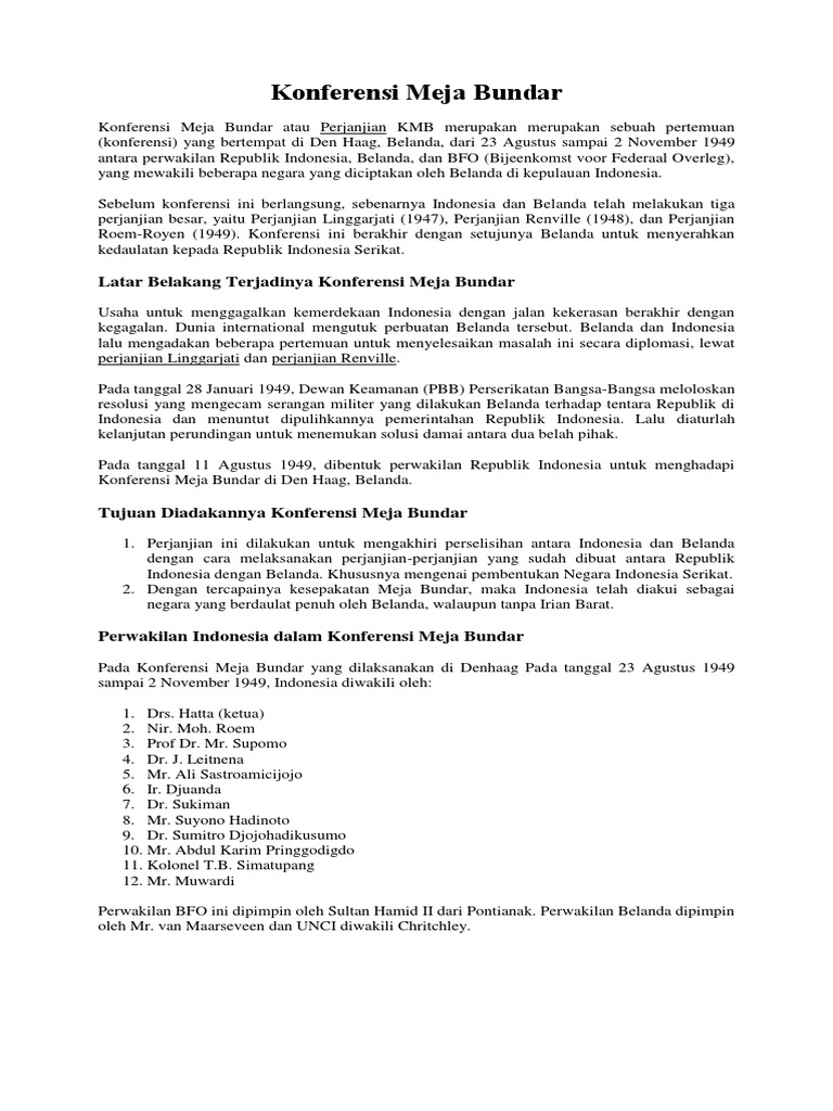 Isi Perjanjian Kmb Konferensi Meja Bundar Kata Mutiara