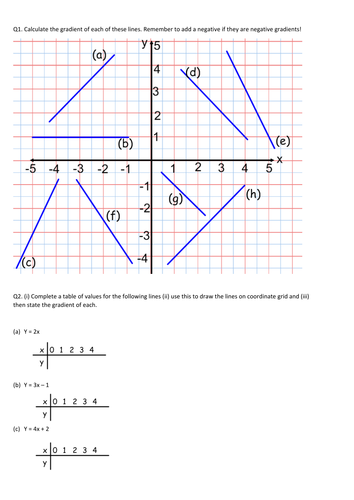 Y Mx C Finding Gradient And Y Intercept Sheets Teaching Resources