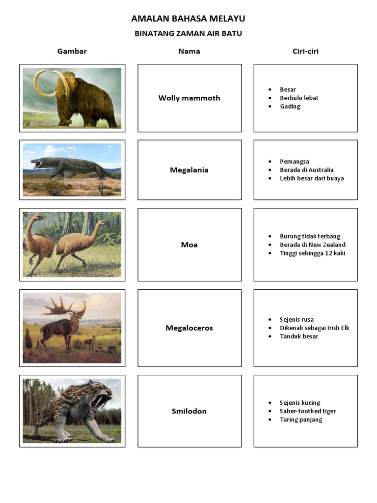 Amalan Bahasa Melayu Binatang Zaman Air Batu Gambar Nama Ciri Ciri