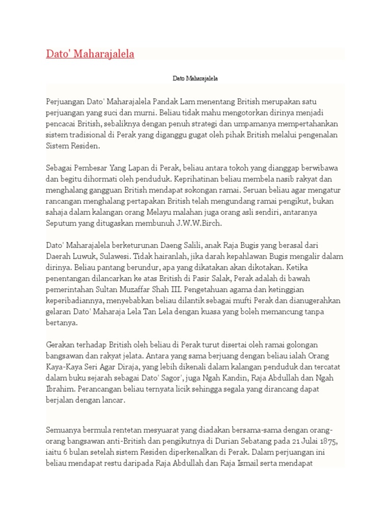 Kk Dato Maharaja Lela Docx 1 0 Pengenalan Rentetan Daripada Kedatangan British Ke Tanah Melayu Menimbulkan Pelbagai Reaksi Masyarakat Terhadap Course Hero