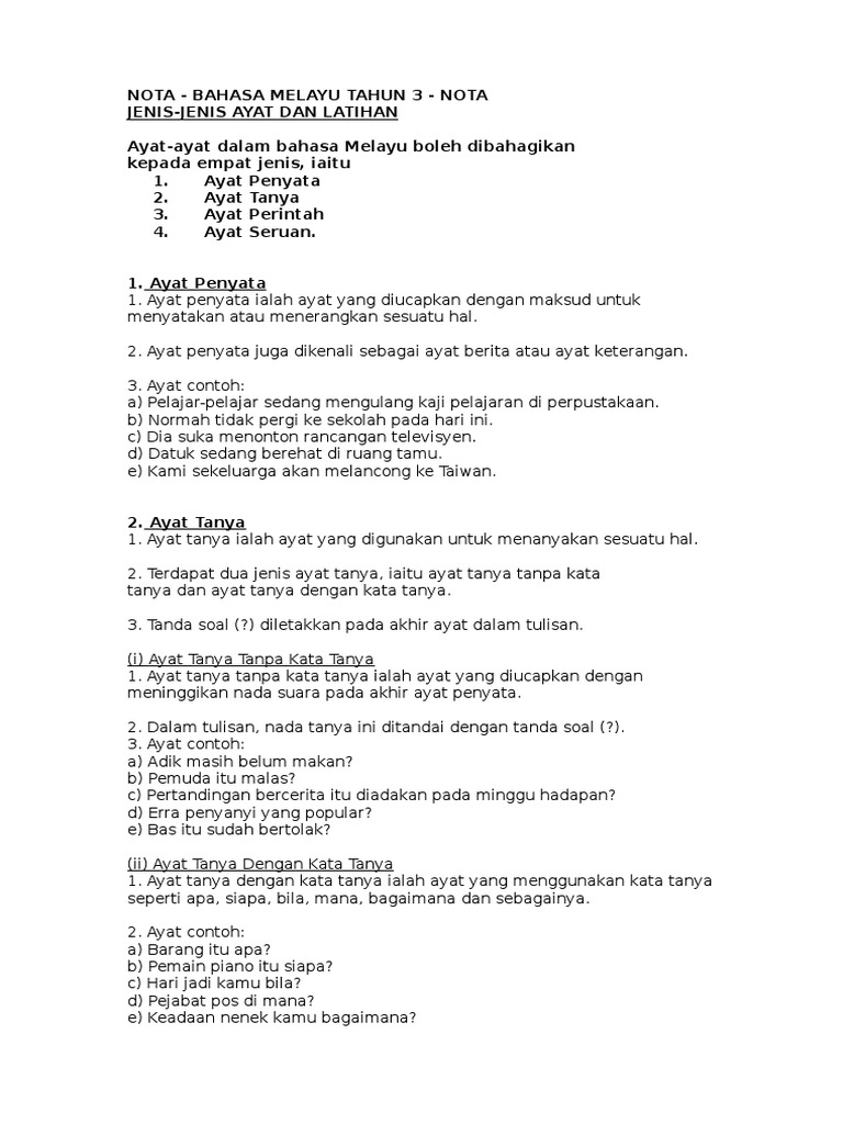 Jenis Jenis Ayat Bahasa Melayu Ayat Tulisan Membaca