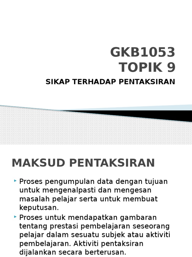 Gkb1053 Gp14 Pptx Jenis Jenis Pentaksiran Dan Tujuannya Oleh Fatin Elissa Binti Mohamad Nasimussobah Syifa Wahdina Binti Mohd Sukri Pentaksiran Course Hero