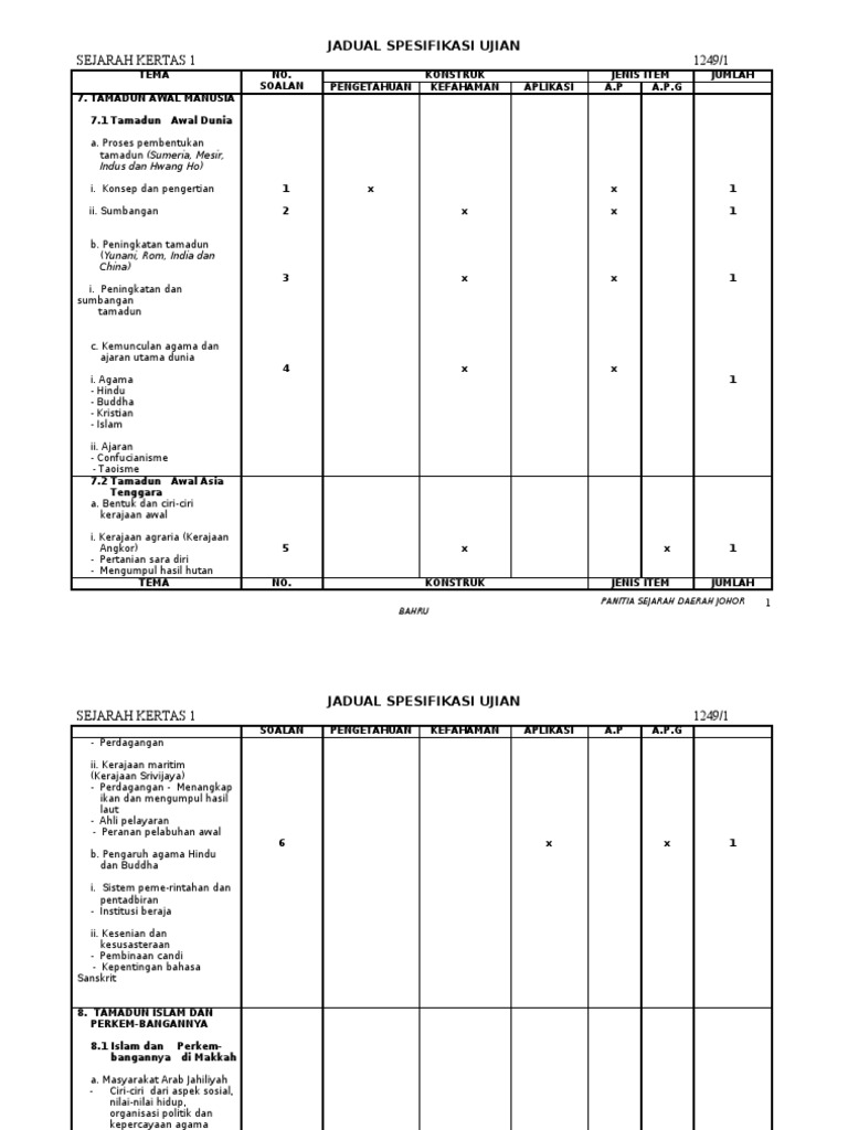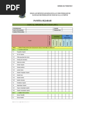 Jsu Sejarah Tingkatan 1 Kssm 2020