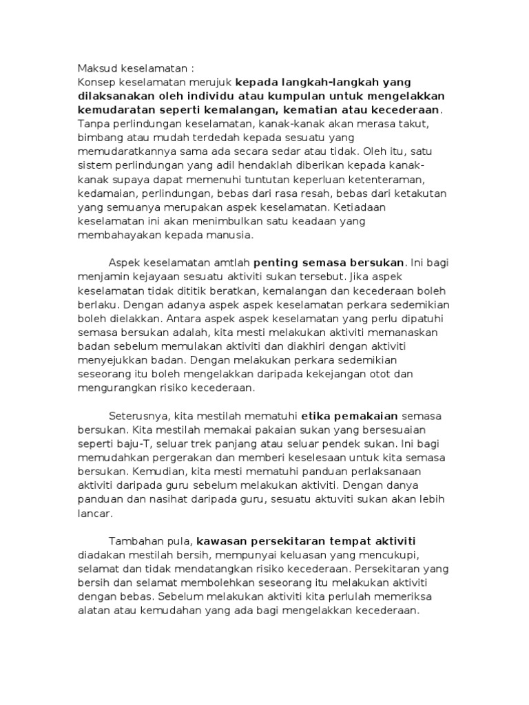 Karangan Cara Cara Menjaga Keselamatan Diri Ketika Bersukan