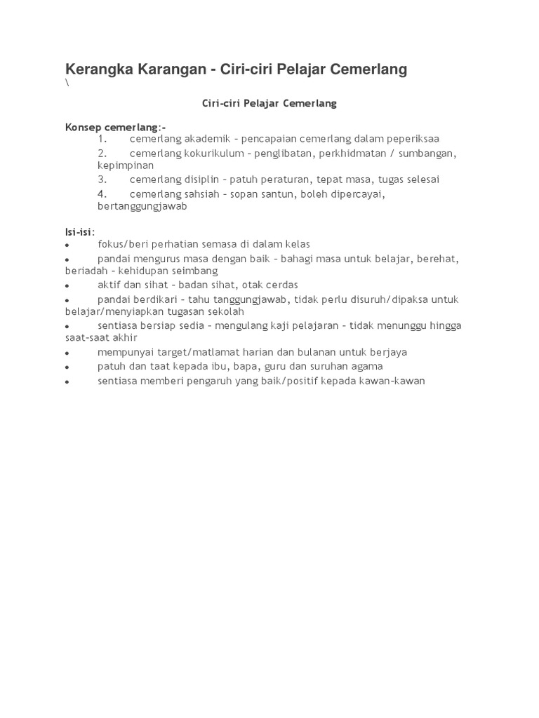 Kerangka Karangan Ciri Ciri Pelajar Cemerlang