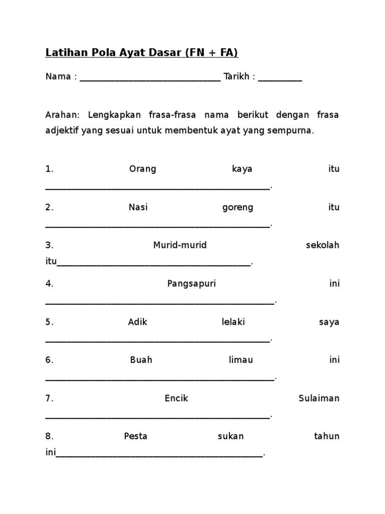 Latihan Pola Ayat Dasar