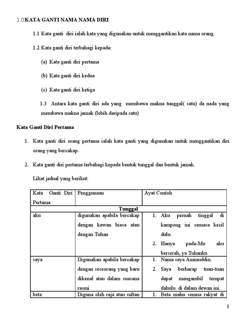 Nota Bahasa Malaysia Kata Ganti Nama Diri