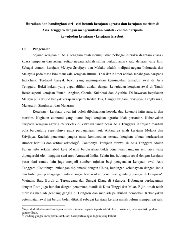 Kerajaan Agraria 2 Docx Ciri Ciri Utama Kerajaan Agraria Ialah Ia Sebuah Kerajaan Yang Menjalankan Kegiatan Ekonomi Berasaskan Aktiviti Pertanian Course Hero