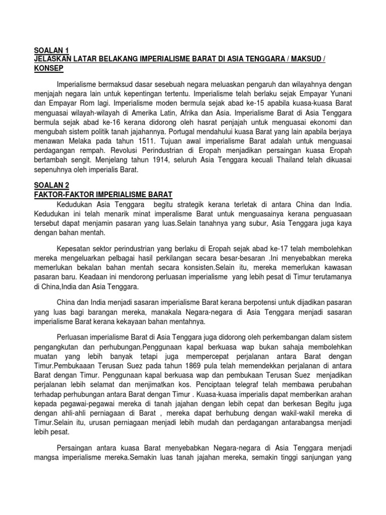 Kesan Imperialisme Barat Di Asia Tenggara Tingkatan 5