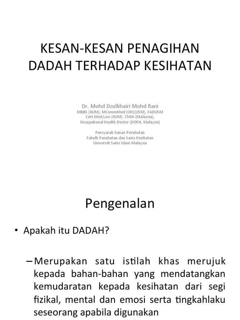 Kesan Kesan Penagihan Dadah Terhadap Kesihatan Dr Mohd Dzulkhairi Mohd Rani