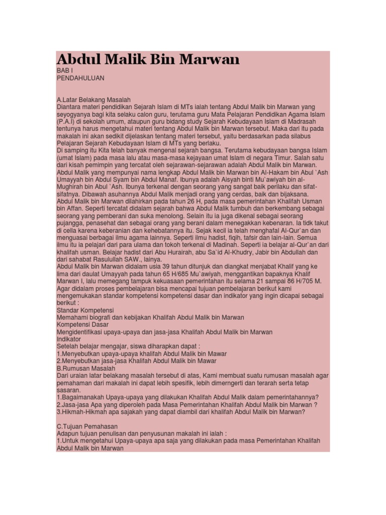 Sejarah Abdul Malik Bin Marwan 646 705 M Hazanid