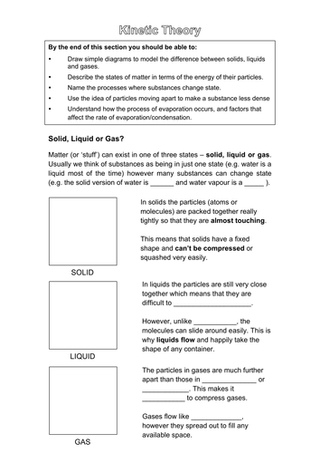 Kinetic Theory Of Matter Worksheet And Answers Teaching Resources