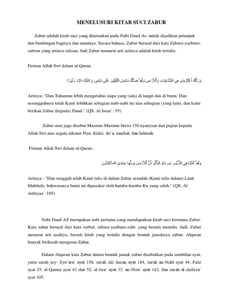 Kitab Zabur Diturunkan Kepada Nabi Daud As Pernyataan Ini Terdapat Dalam