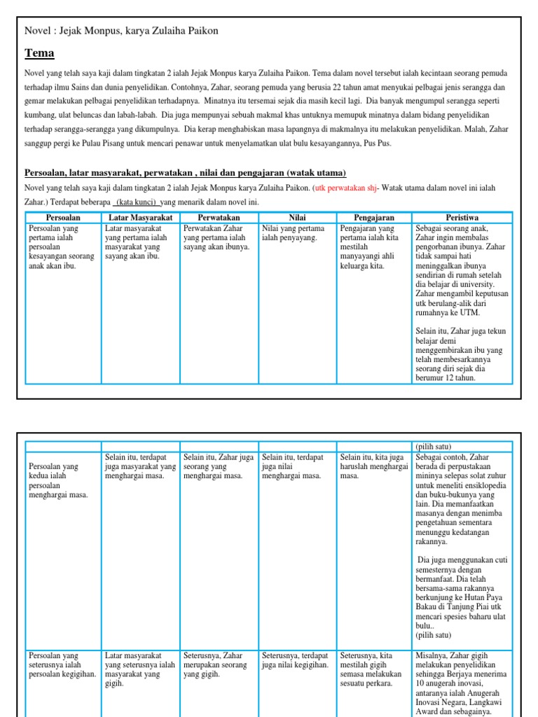 Komsas Tingkatan 2 Jejak Monpus Watak Dan Perwatakan