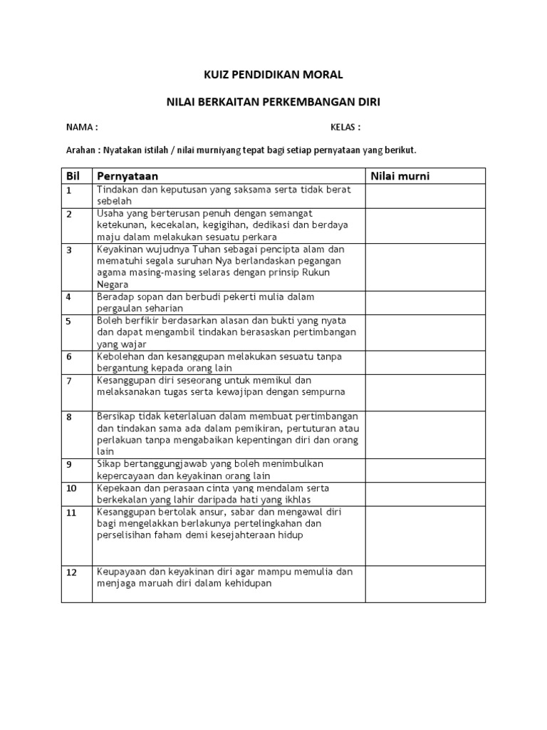 Contoh Soalan Pendidikan Moral Tahun 1 Kssr Tersoal P