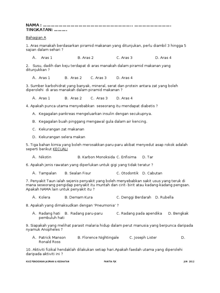 Soalan Kuiz Pendidikan Jasmani Dan Kesihatan Sekolah Menengah