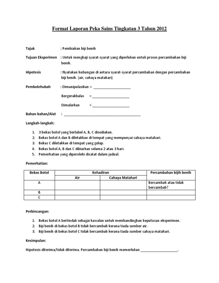 Format Laporan Peka Sains Tingkatan 3 Tahun 2012