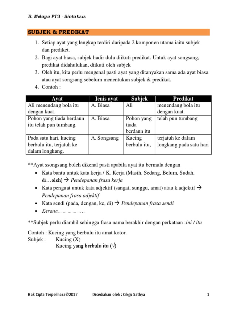 Cemerlang Bahasa Melayu Tatabahasa Ayat Biasa Ayat Songsang