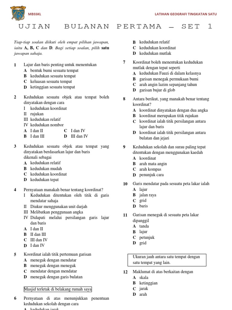 Latihan Geografi Tingkatan 1