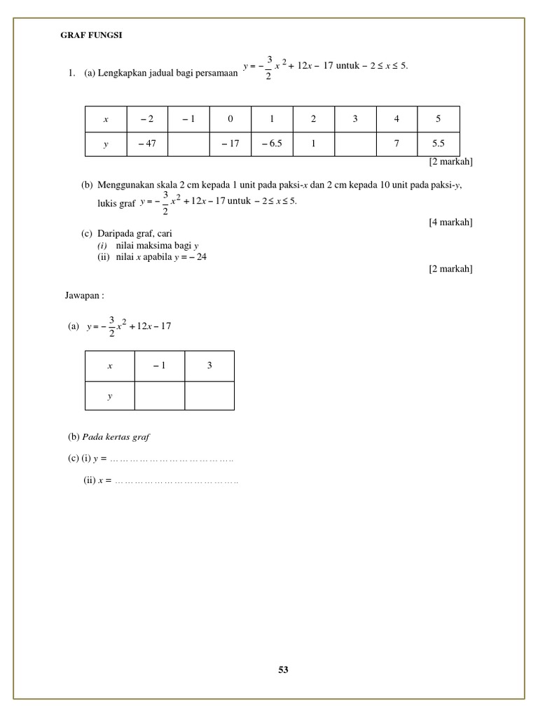 Soalan Graf Fungsi Tingkatan 3 Persoalan N