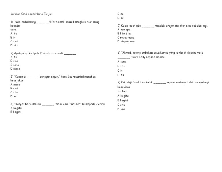 Latihan Tatabahasa Kata Ganti Nama Tunjuk Tingkatan 3