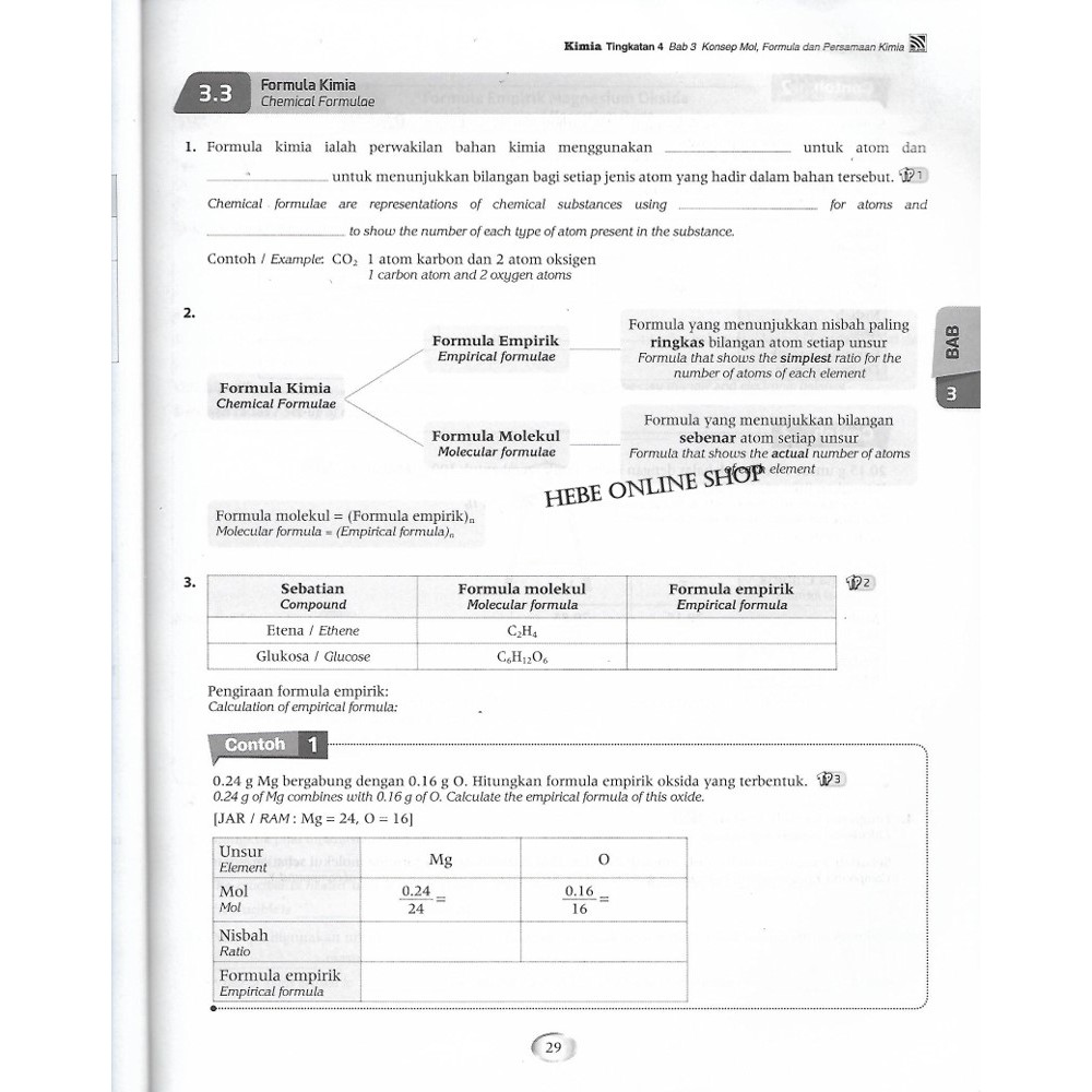 Soalan Tubi F4 Kimia Bab 3 Formula Persamaan Kimia