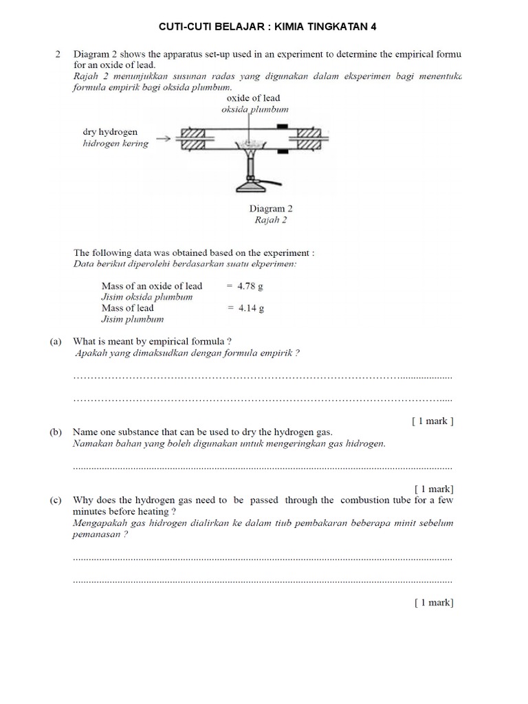 Contoh Soalan Kimia Tingkatan 4 Kssm
