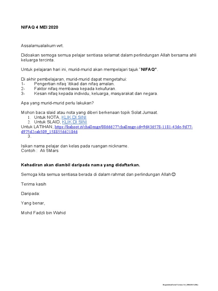 Kufur Nifaq Tahun 4 Sumber Pengajaran