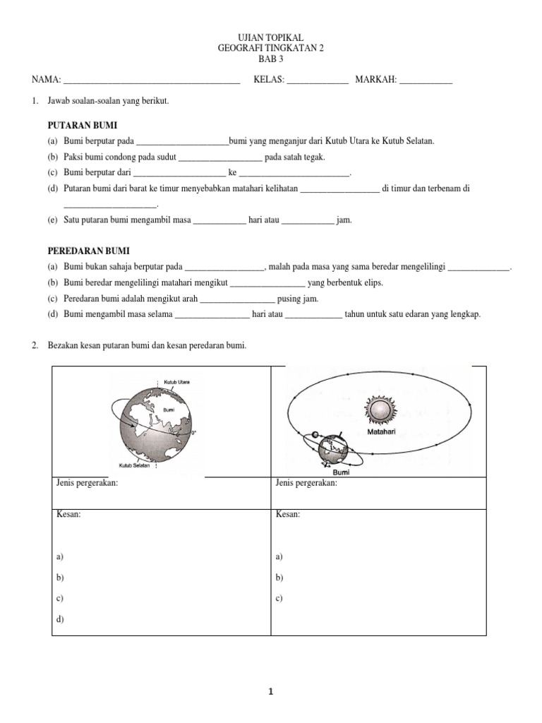 Latihan Putaran Dan Peredaran Bumi Tahun 4