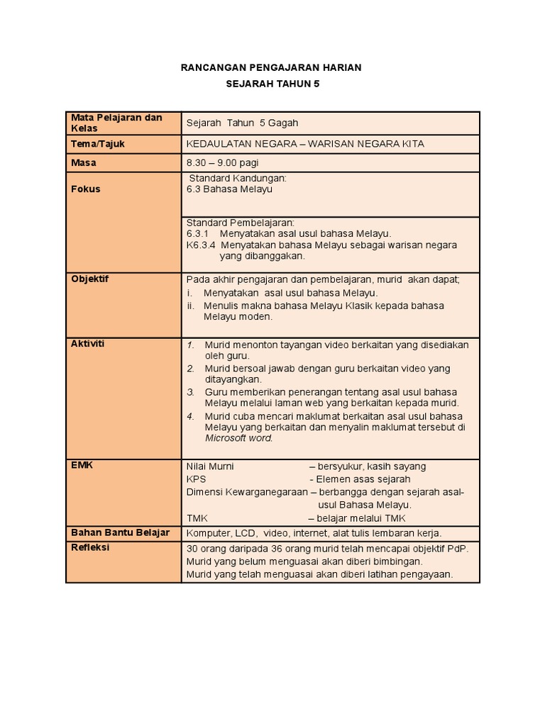 Rph Sejarah Tahun 5 Bahasa Melayu Warisan Kita