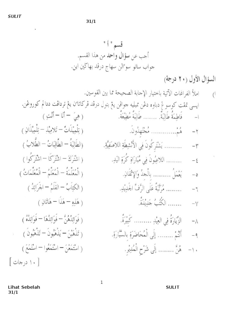 Latihan Soalan Bahasa Arab Tingkatan 1