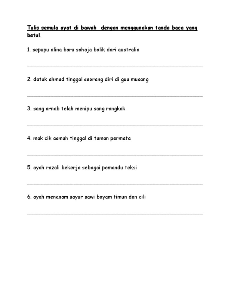 Latihan Tanda Baca Bahasa Melayu Tahun 2