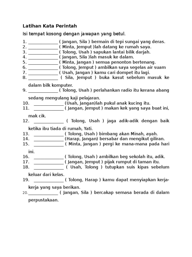 Latihan Tatabahasa Latihan Kata Perintah Tahun 1