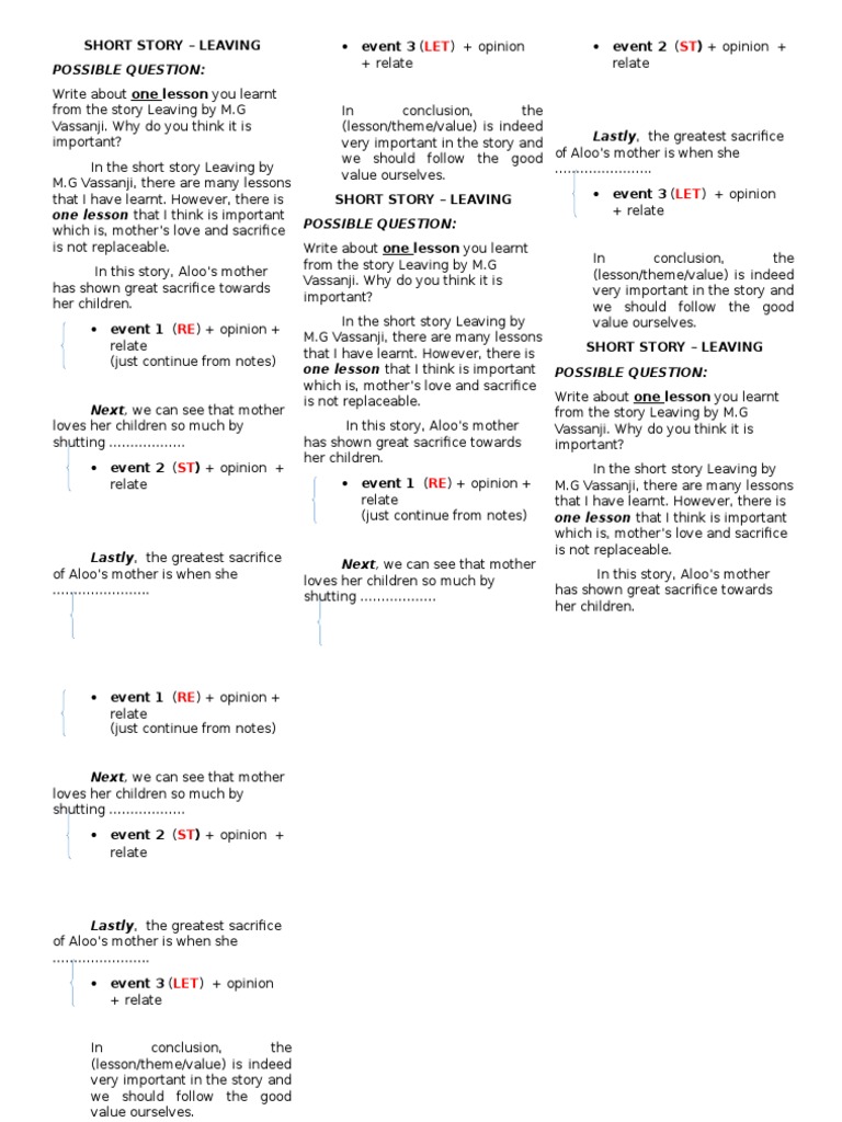 Form 4 Short Story Leaving Exercise Fill In The Blanks Cognition Psychology