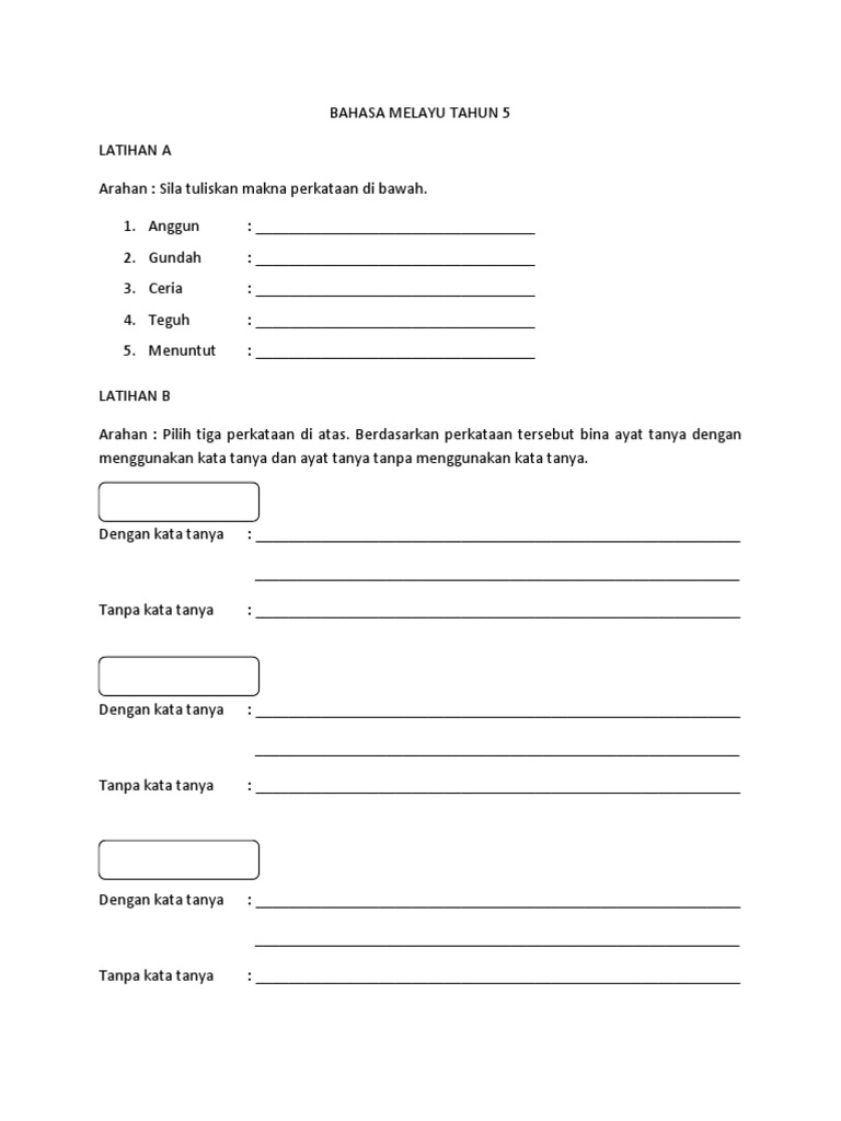 Lembaran Kerja Bahasa Melayu Tahun 5 Docx