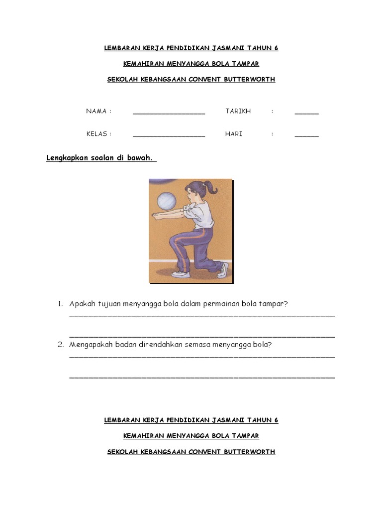 Lembaran Kerja Pendidikan Jasmani Tahun 6