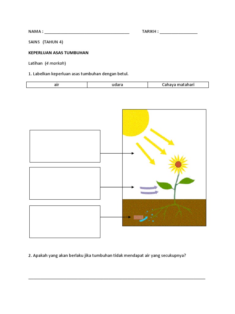 Sains Tahun 4 Keperluan Asas Tumbuhan Latihan Asas 2013