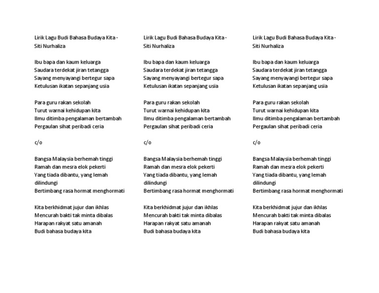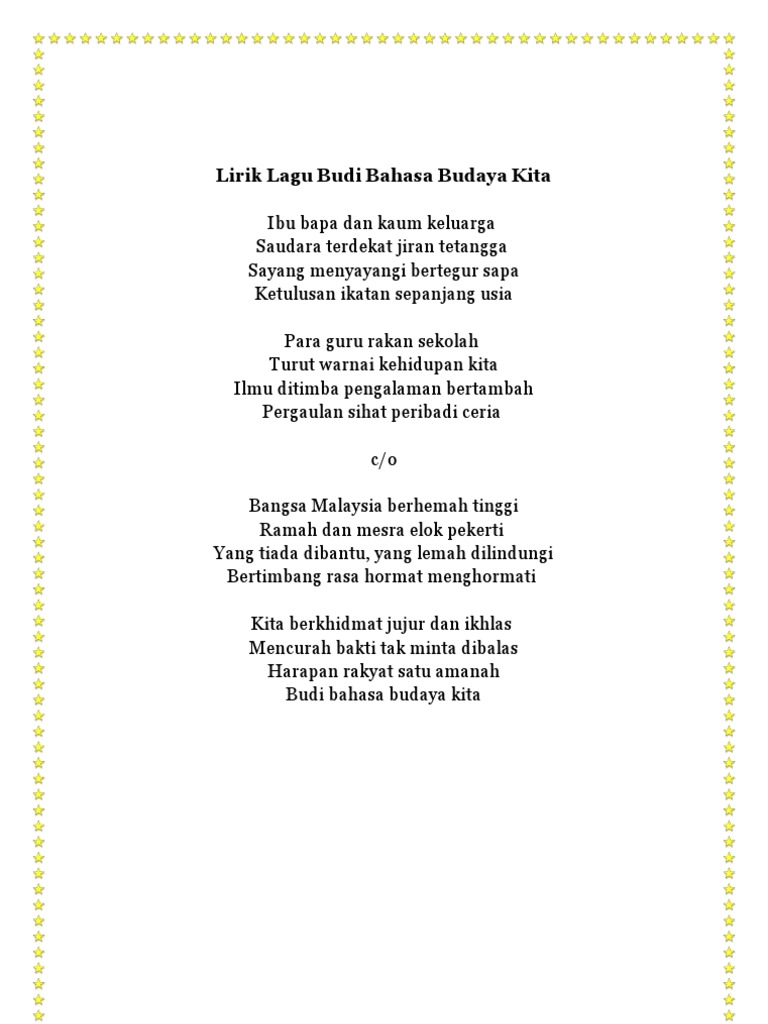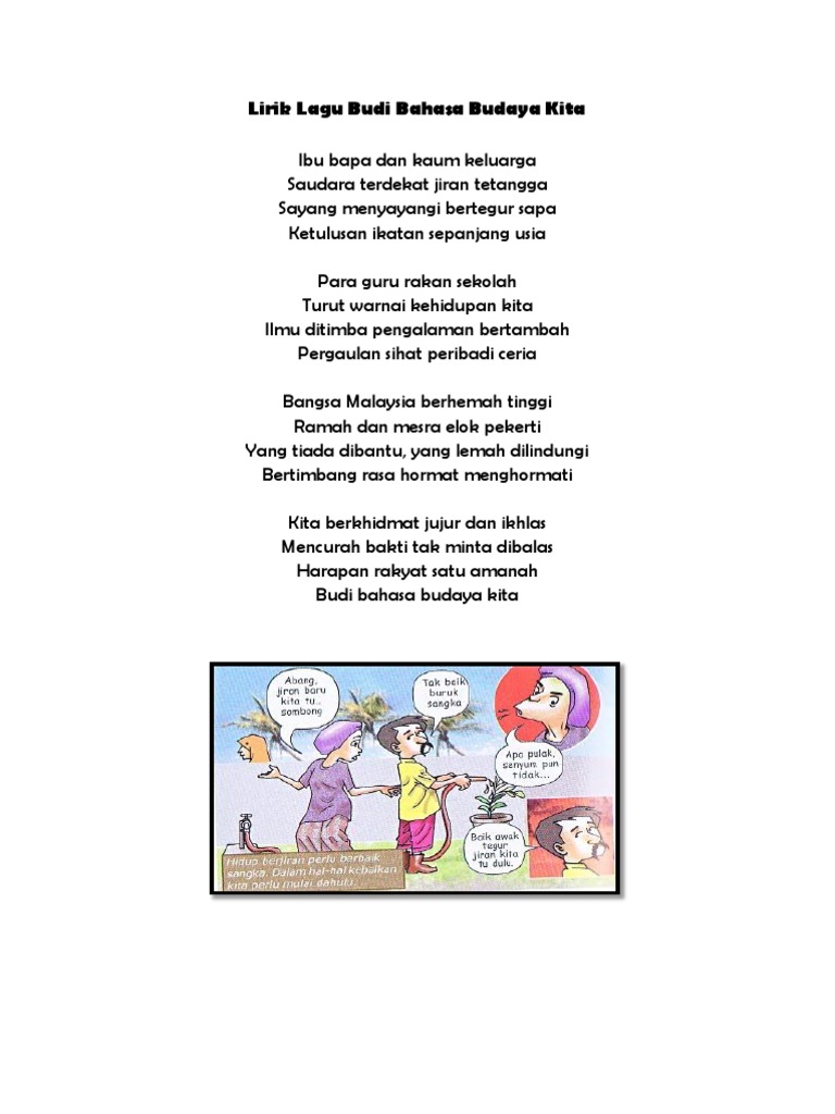 Lirik Lagu Budi Bahasa Budaya Kita Doc Document
