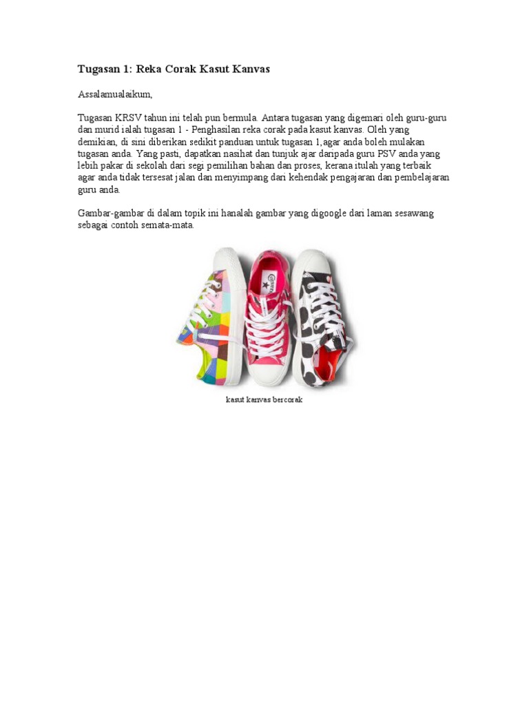 Pendidikan Seni Visual Tugasan 1 Reka Corak Kasut Kanvas