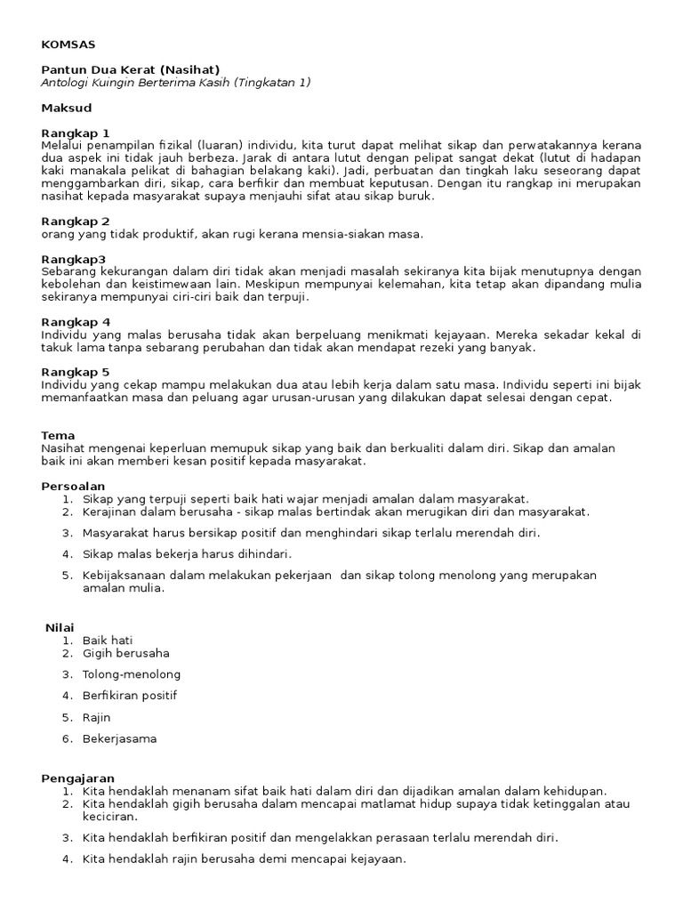 1 Pantun Dua Kerat Nasihat Tingkatan 1 Pdf
