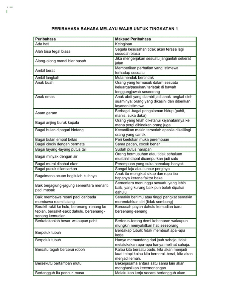 Peribahasa Bahasa Melayu Wajib Untuk Tingkatan 1