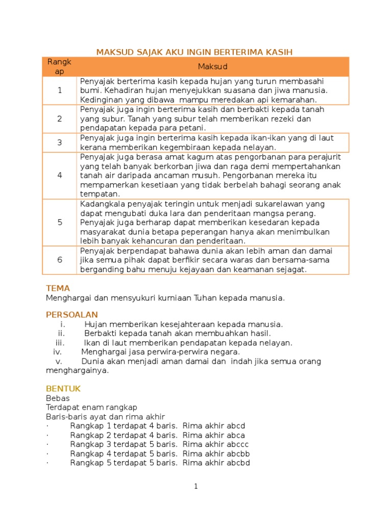 Maksud Sajak Kuingin Berterima Kasih Docx Document