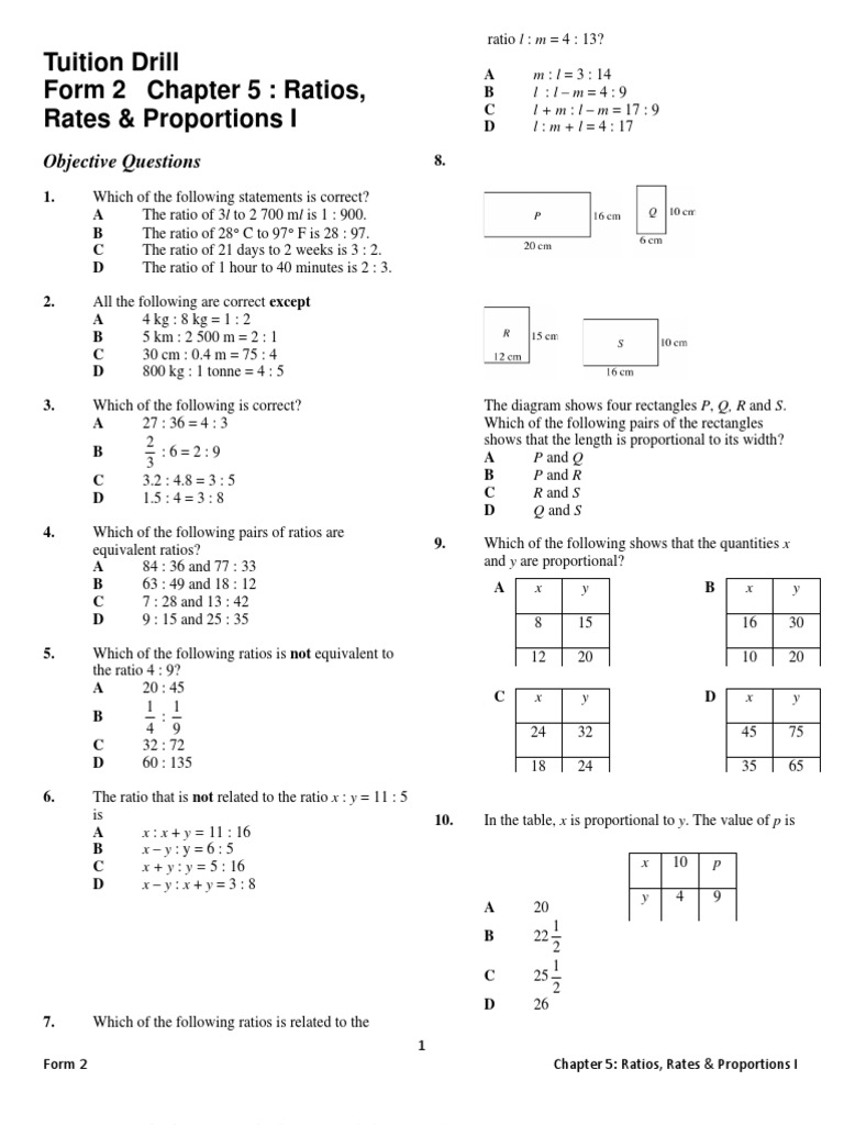 Review Exercise Form 2 Chapter 5 Ratios Rates Proportions I Ratio Litre