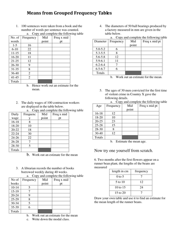 Maths Worksheet Mean Mode From Frequency Tables Teaching Resources