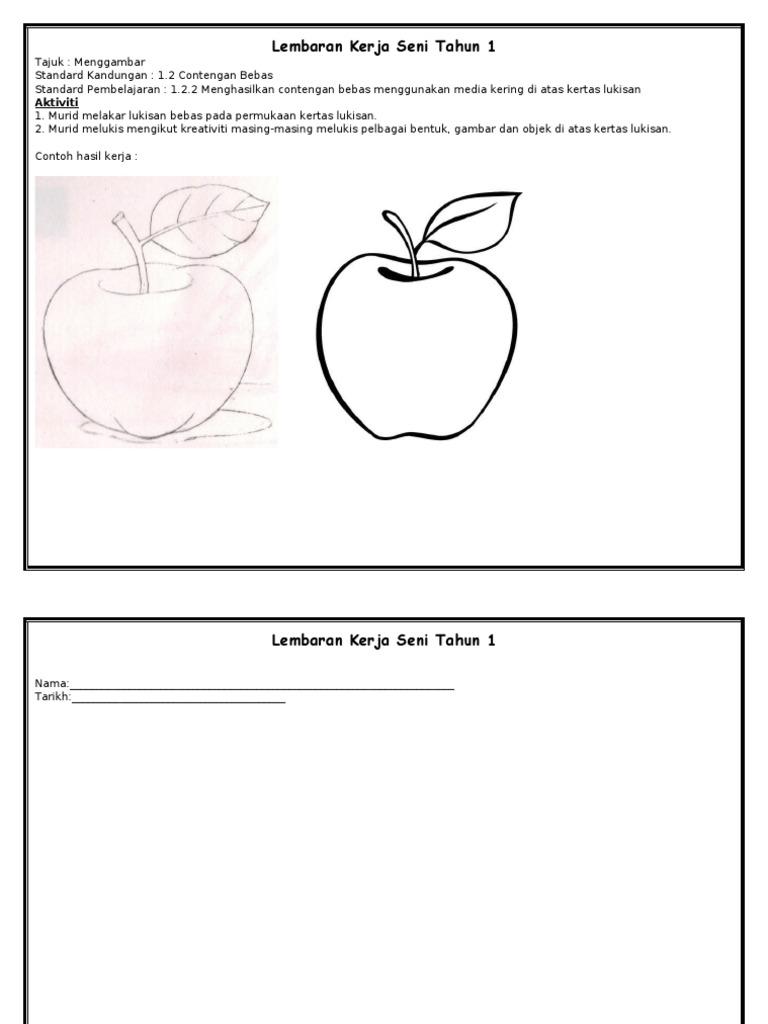 Lembaran Kerja Seni Tahun 1 Aktiviti