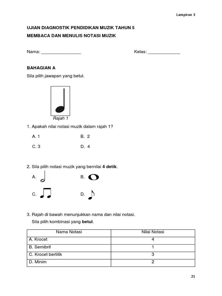 Pendidikan Muzik Tahun 5 Nilai Not Dan Tanda Rehat Quiz Quizizz