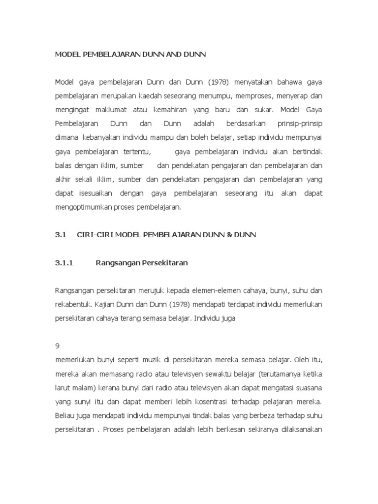 Model Gaya Pembelajaran Dunn Dan Dunn