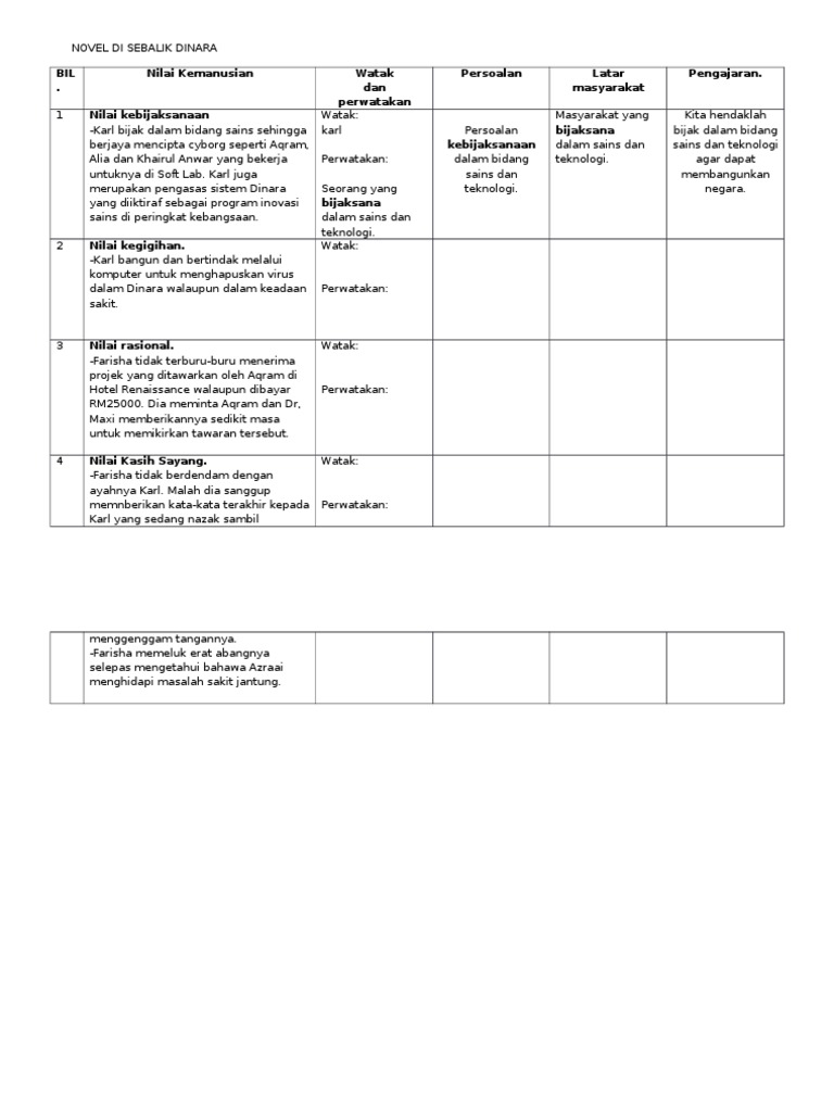 Nilai Murni Dan Pengajaran Novel Di Sebalik Dinara